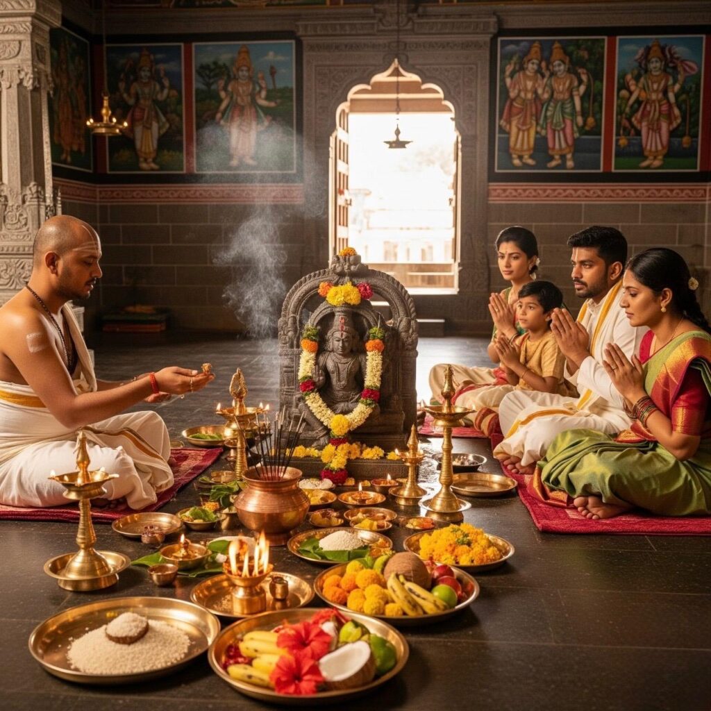 Family members may fast or observe particular food abstentions prior to the pooja.
